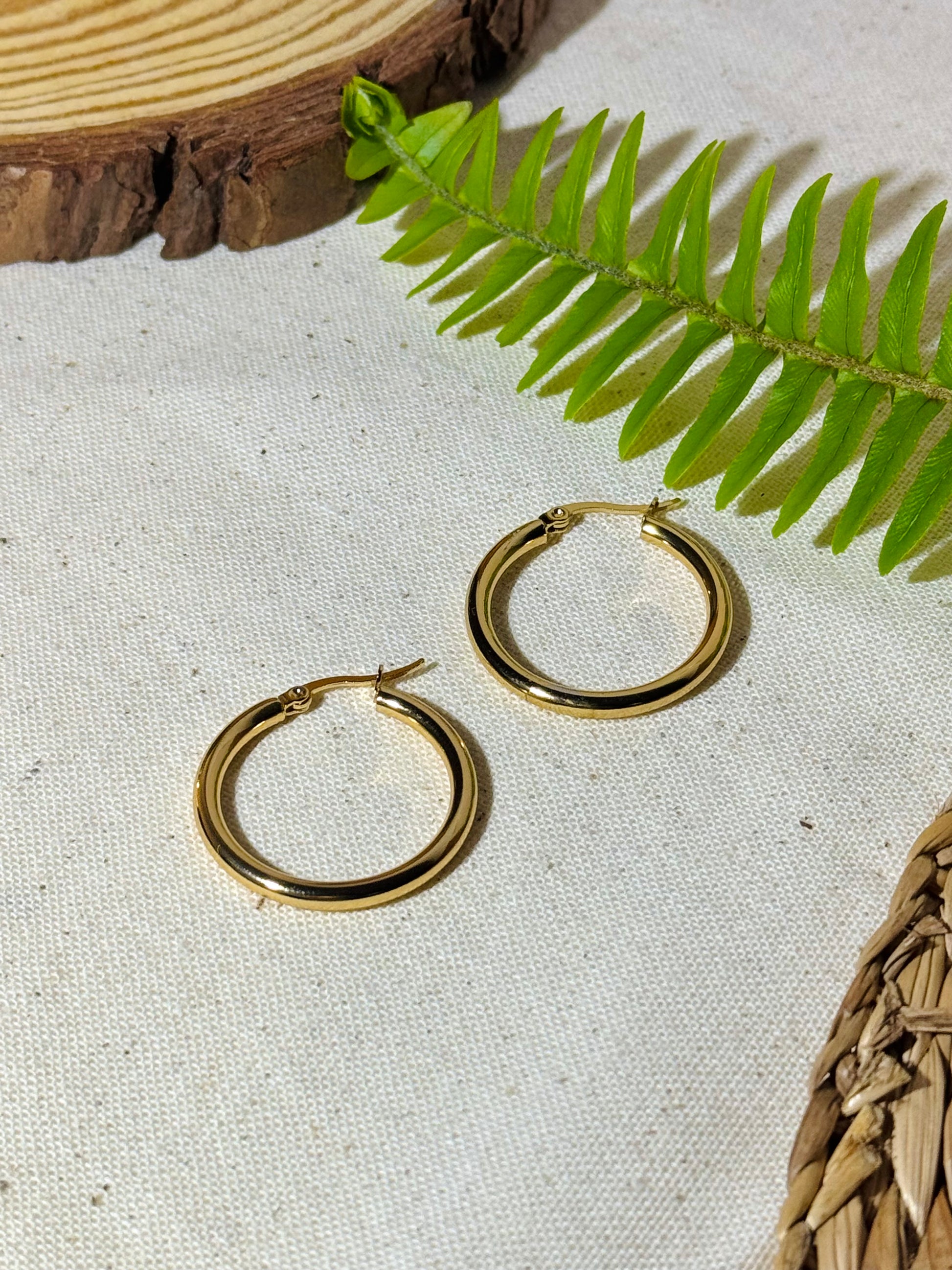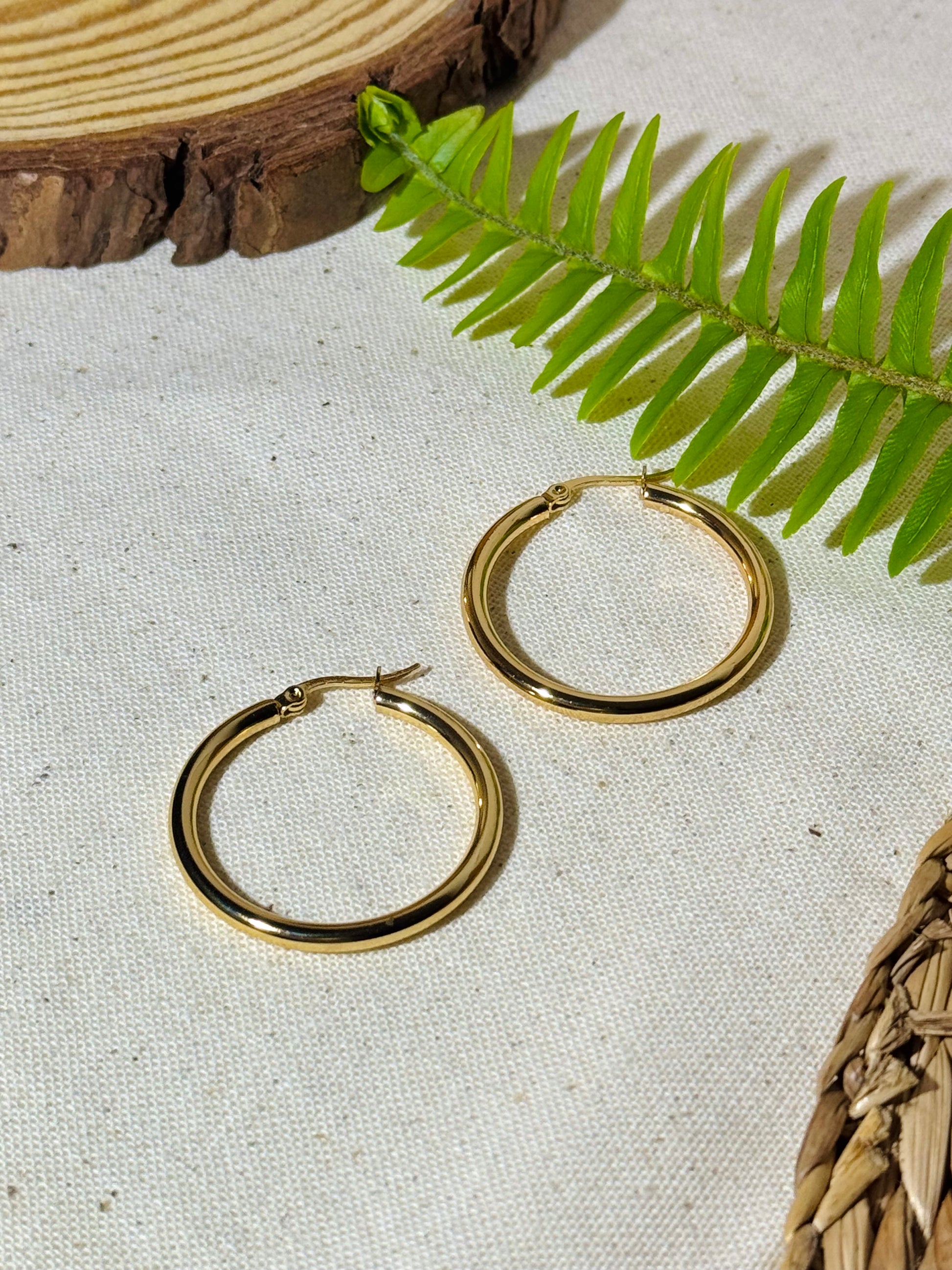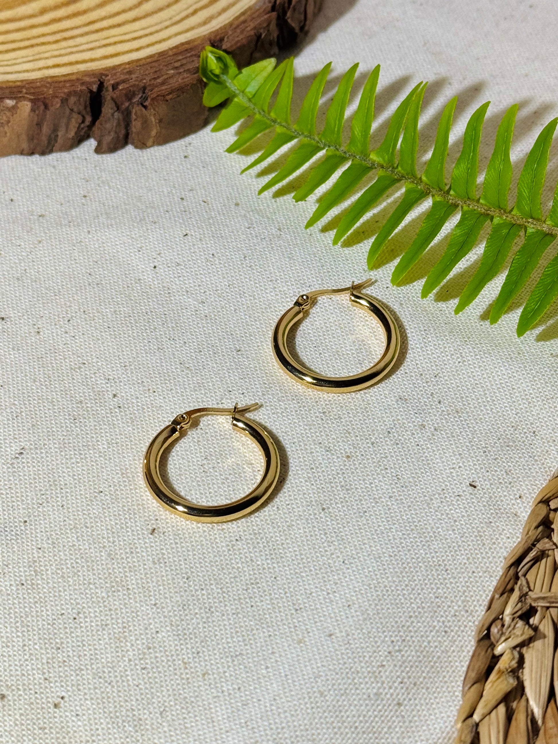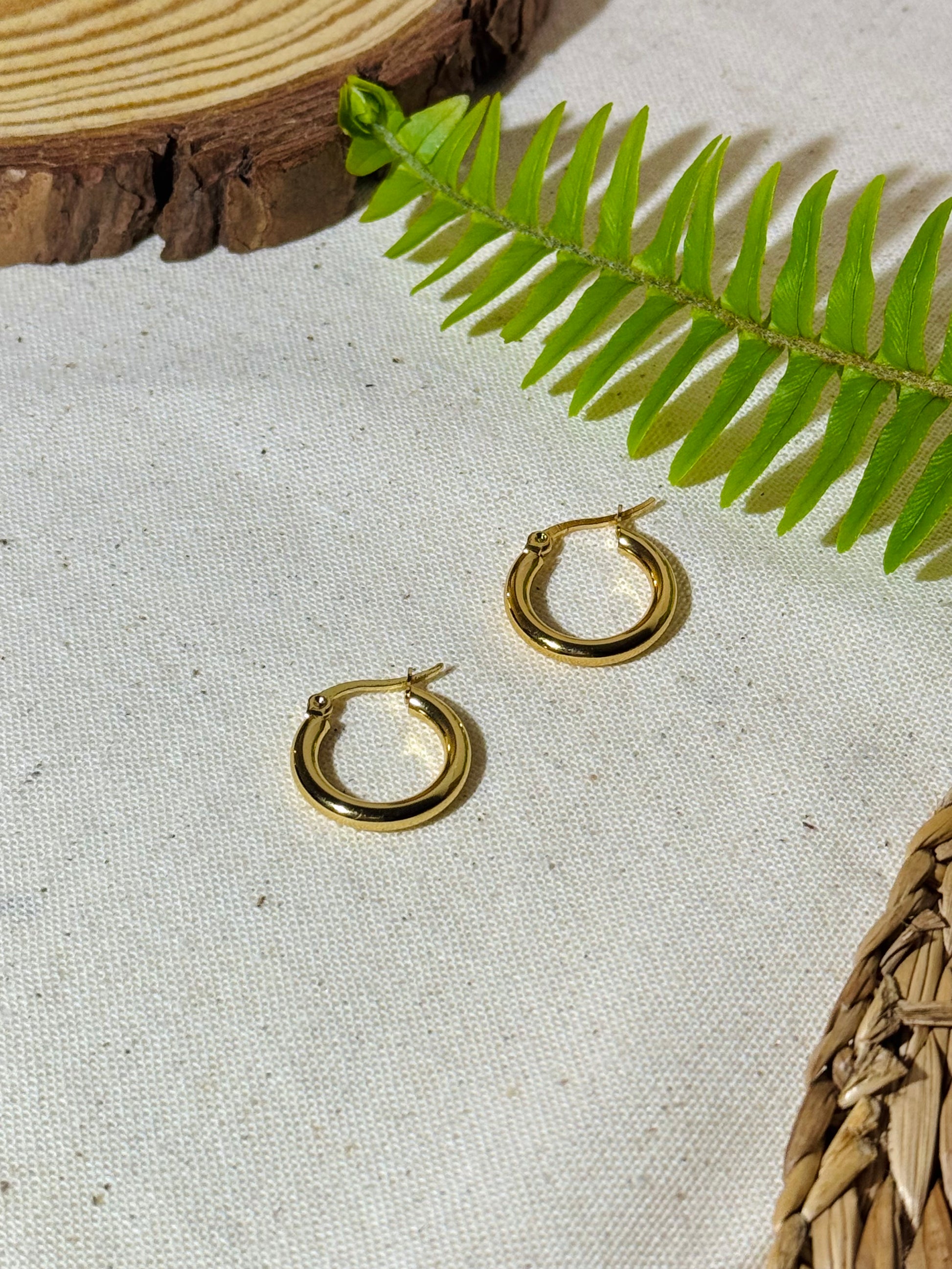 Créoles dorées épaisses de petite taille, idéales pour un style moderne et affirmé.