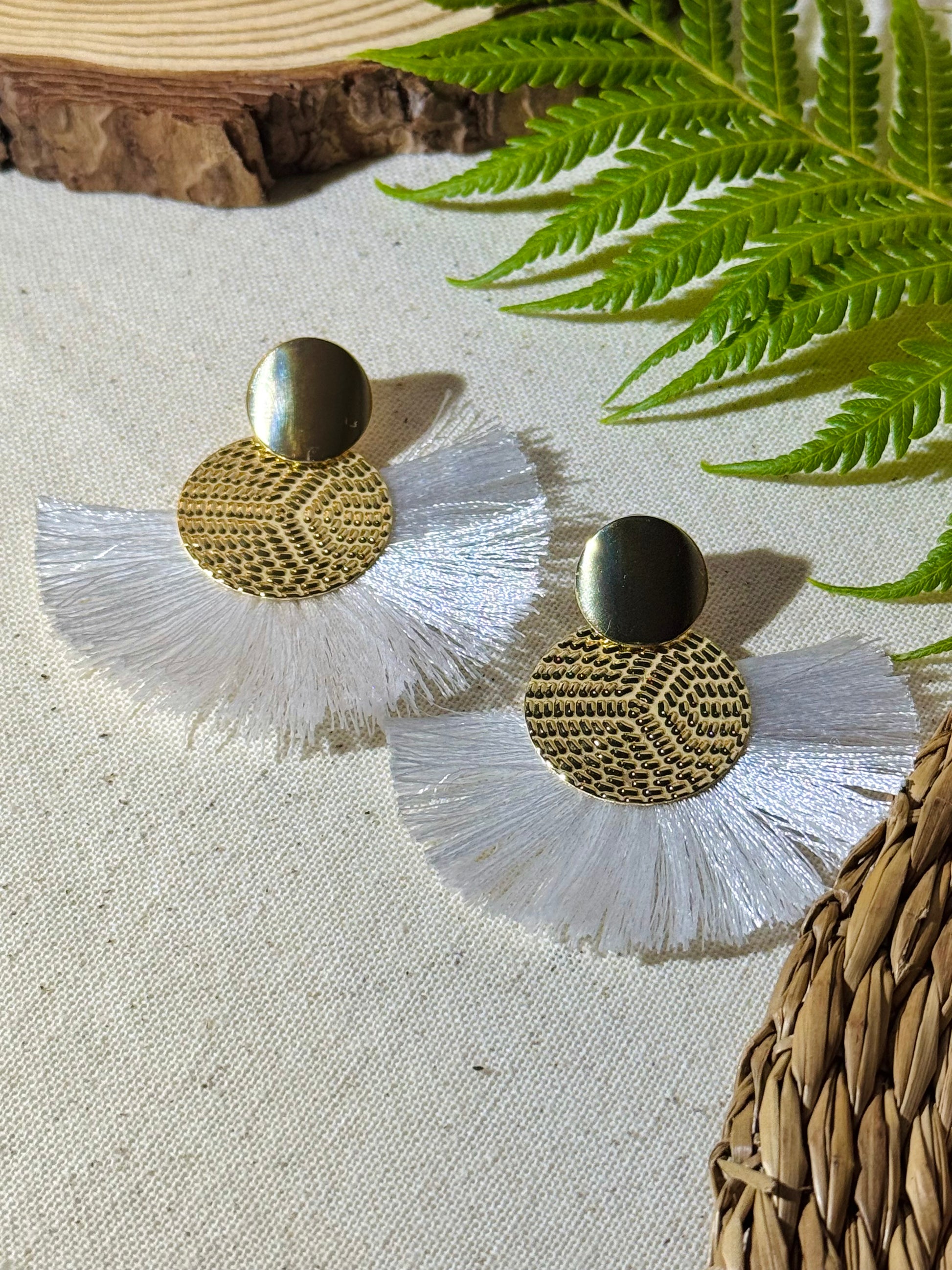 Boucles d’oreilles en forme de feuille délicatement texturée, au design raffiné et lumineux. Parfaite pour ajouter une touche d'élégance intemporelle à toutes vos tenues.