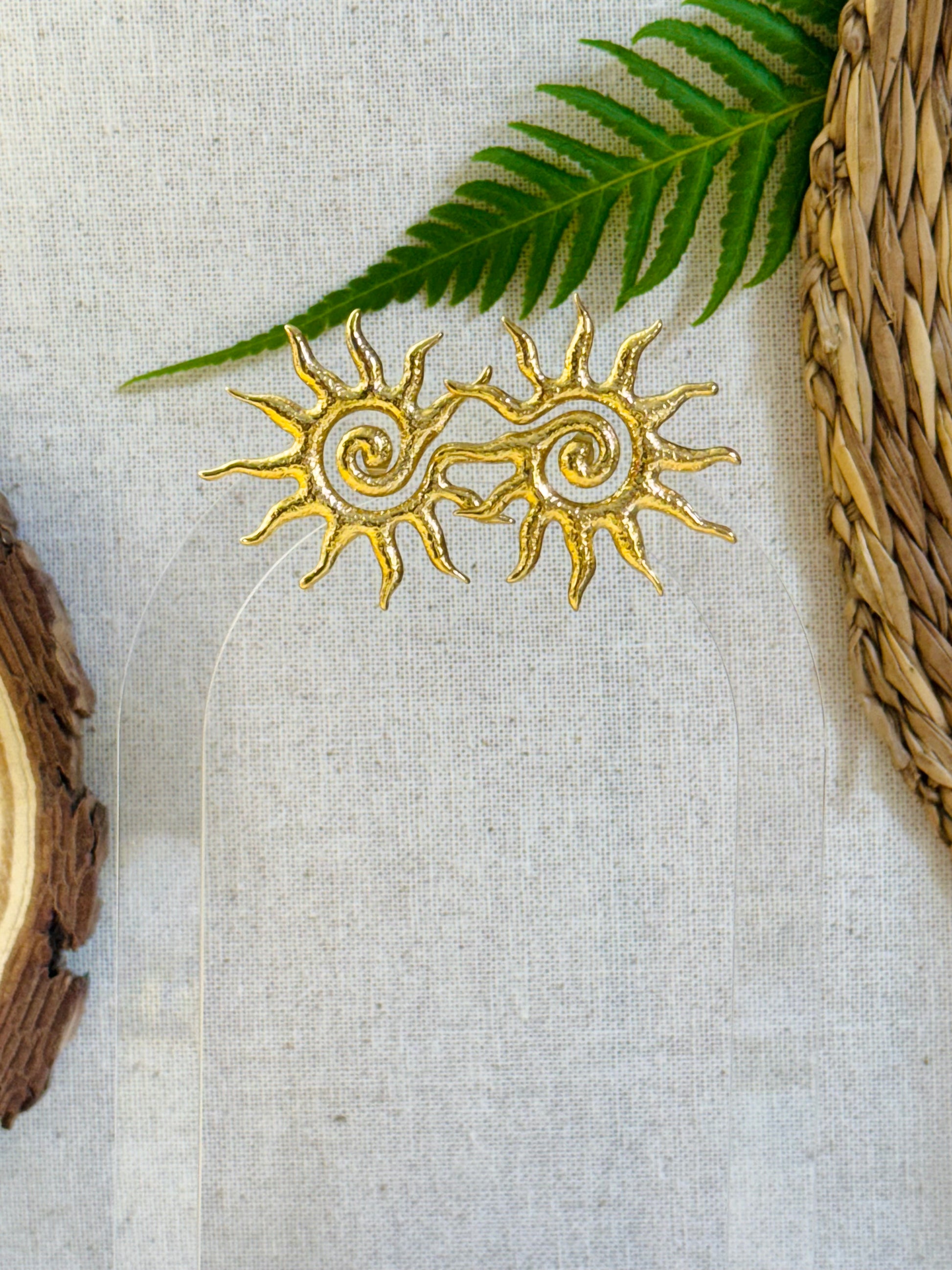 Boucles d’oreilles en forme de soleil tourbillonnant doré.