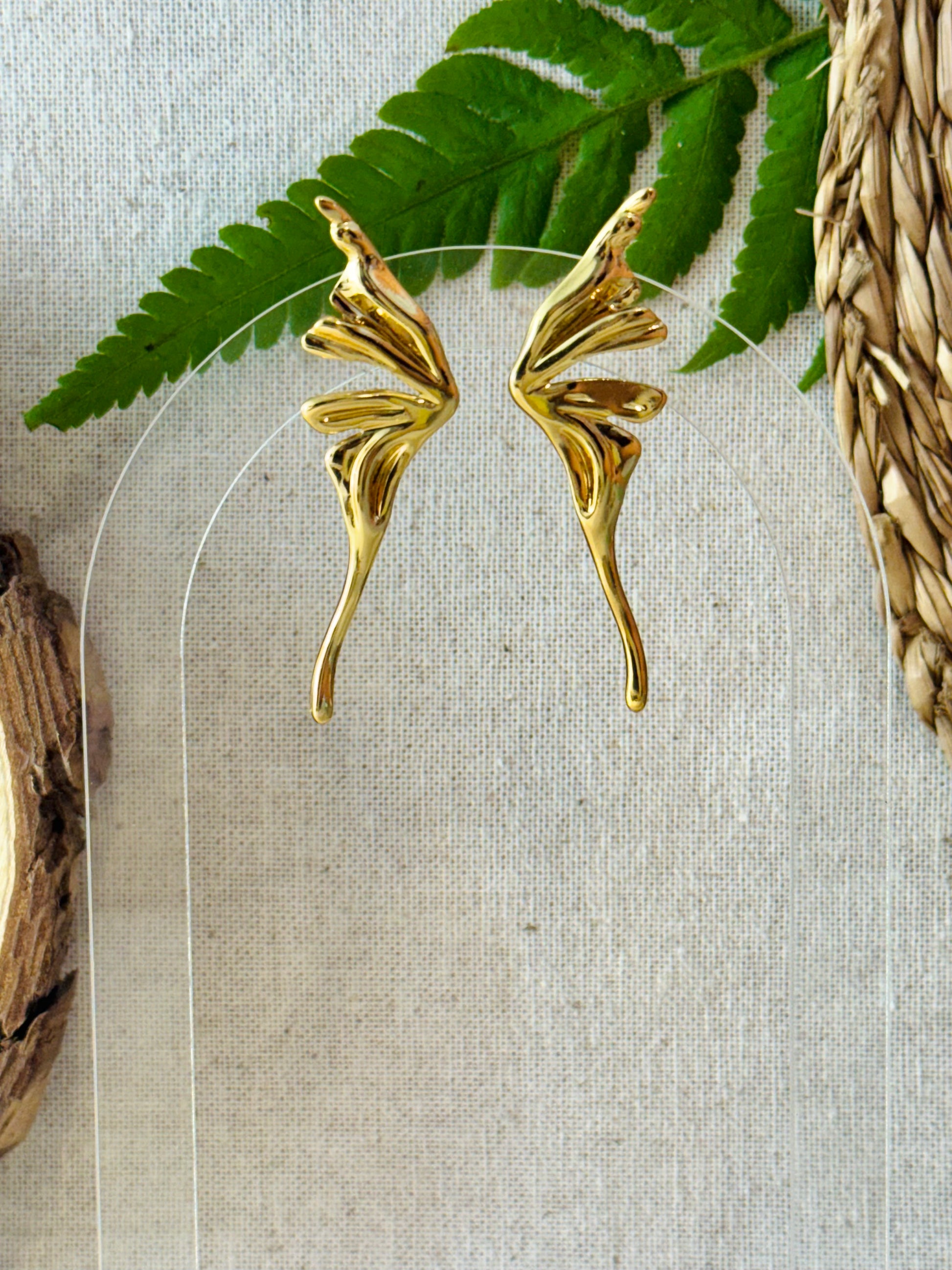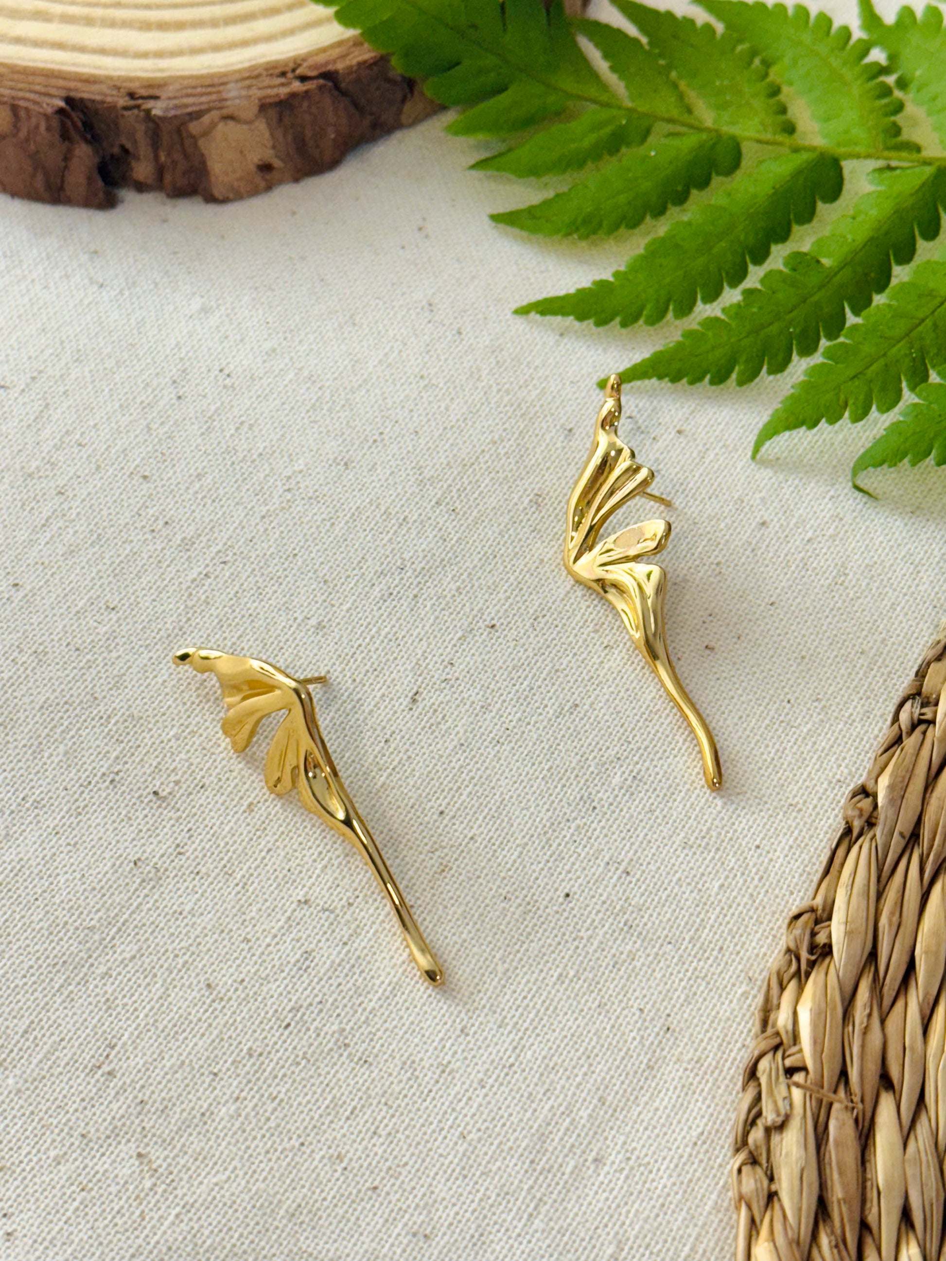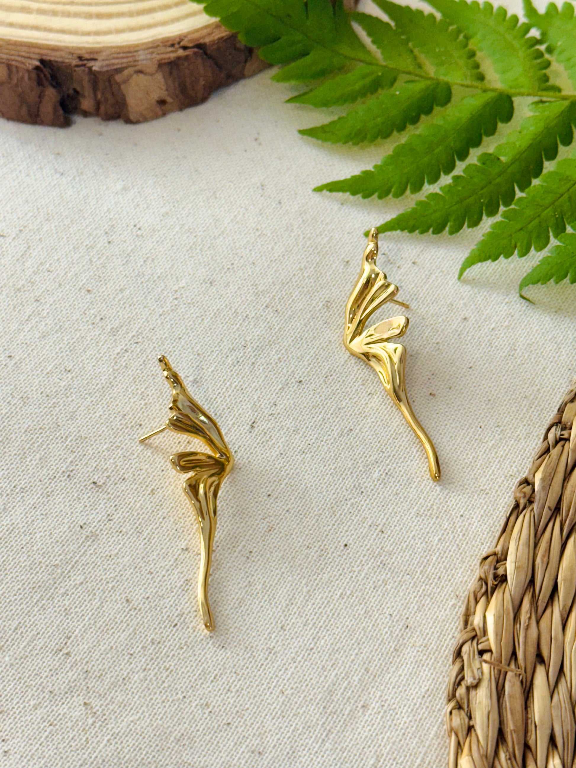 Boucles d’oreilles dorées en forme de papillon.