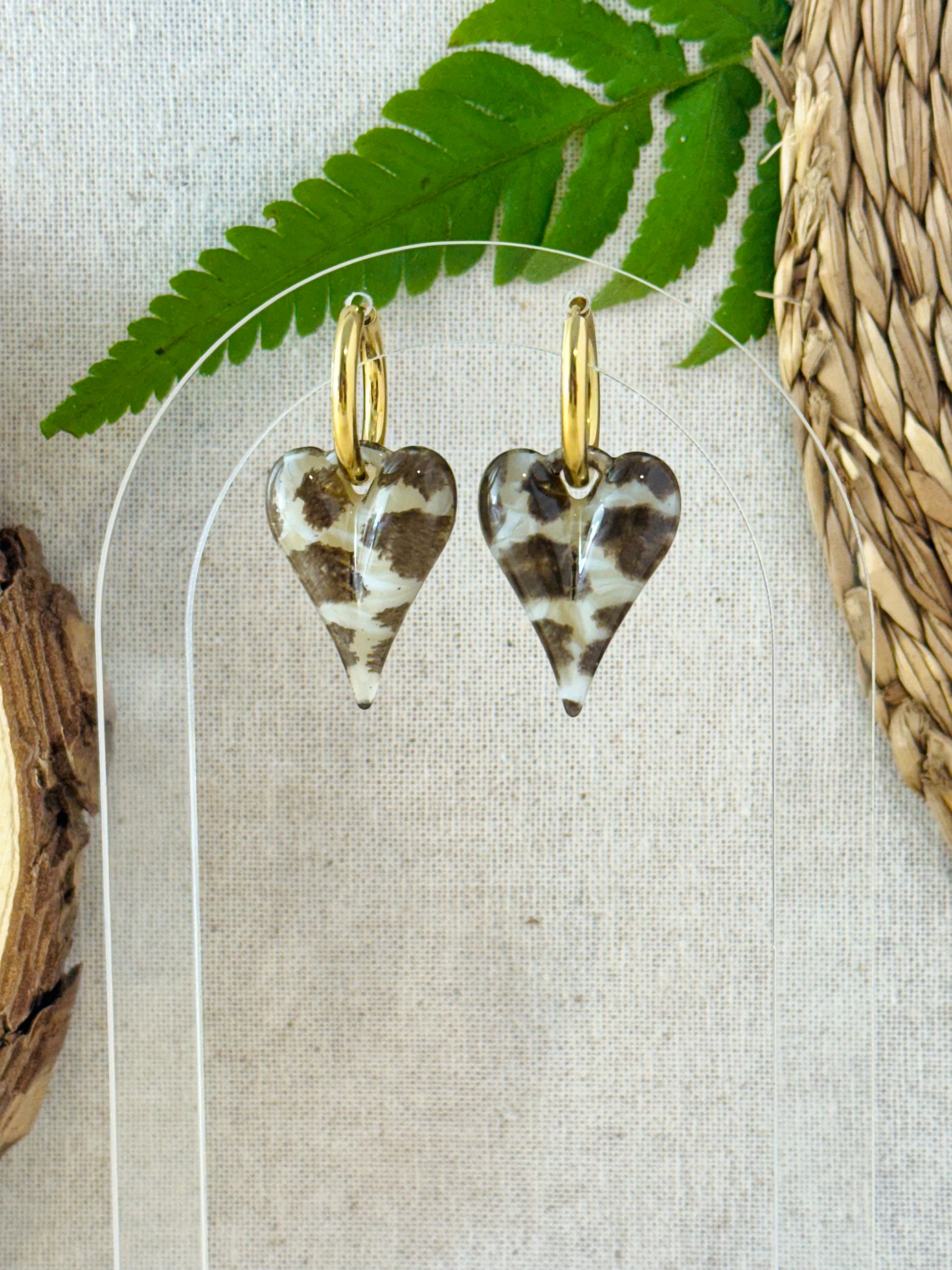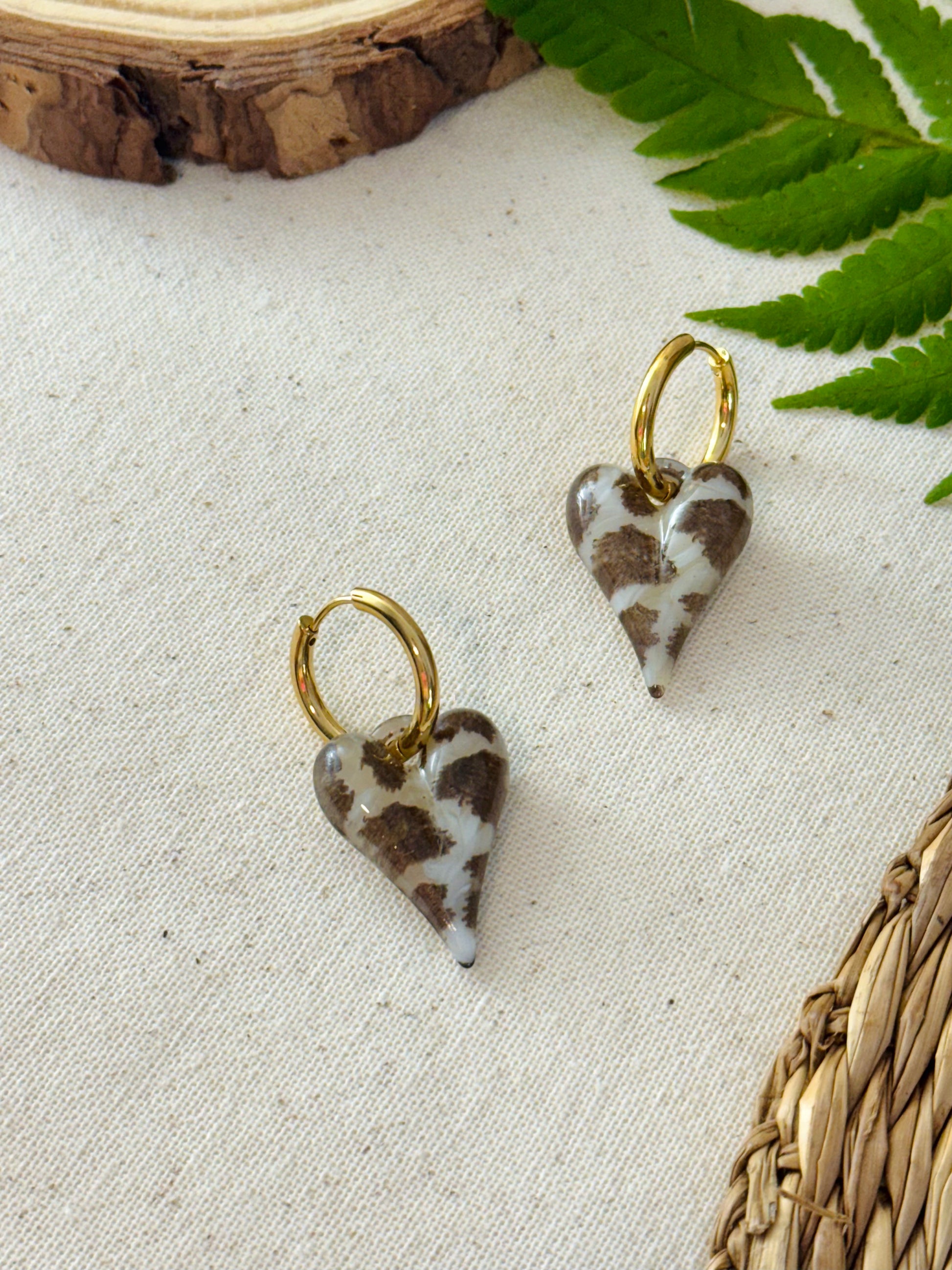 Boucles d’oreilles dorées en forme d’anneau avec pendentif cœur.