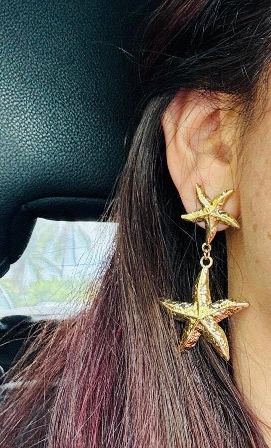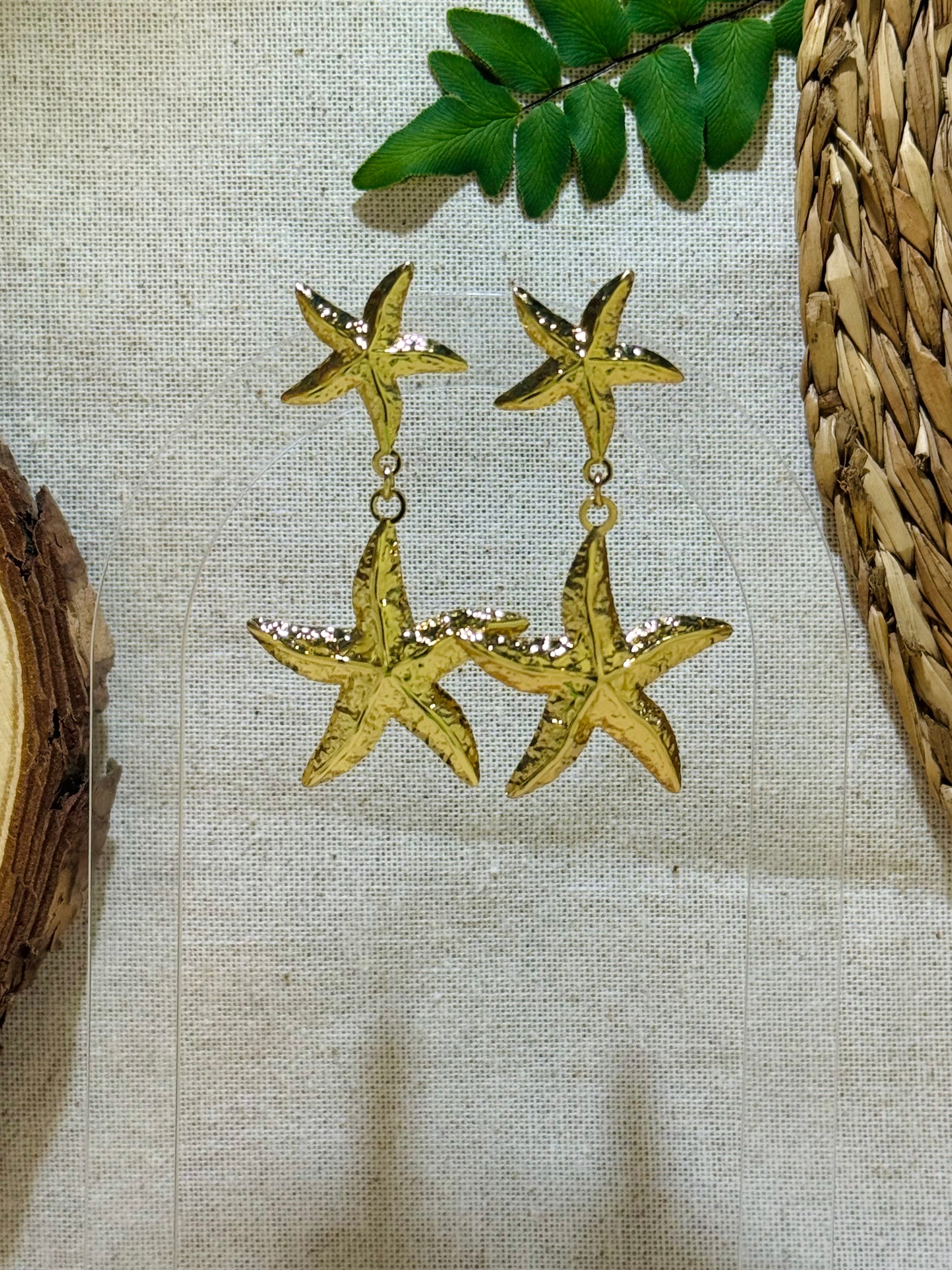 Boucles d’oreilles dorées pendantes en forme d’étoile de mer.
