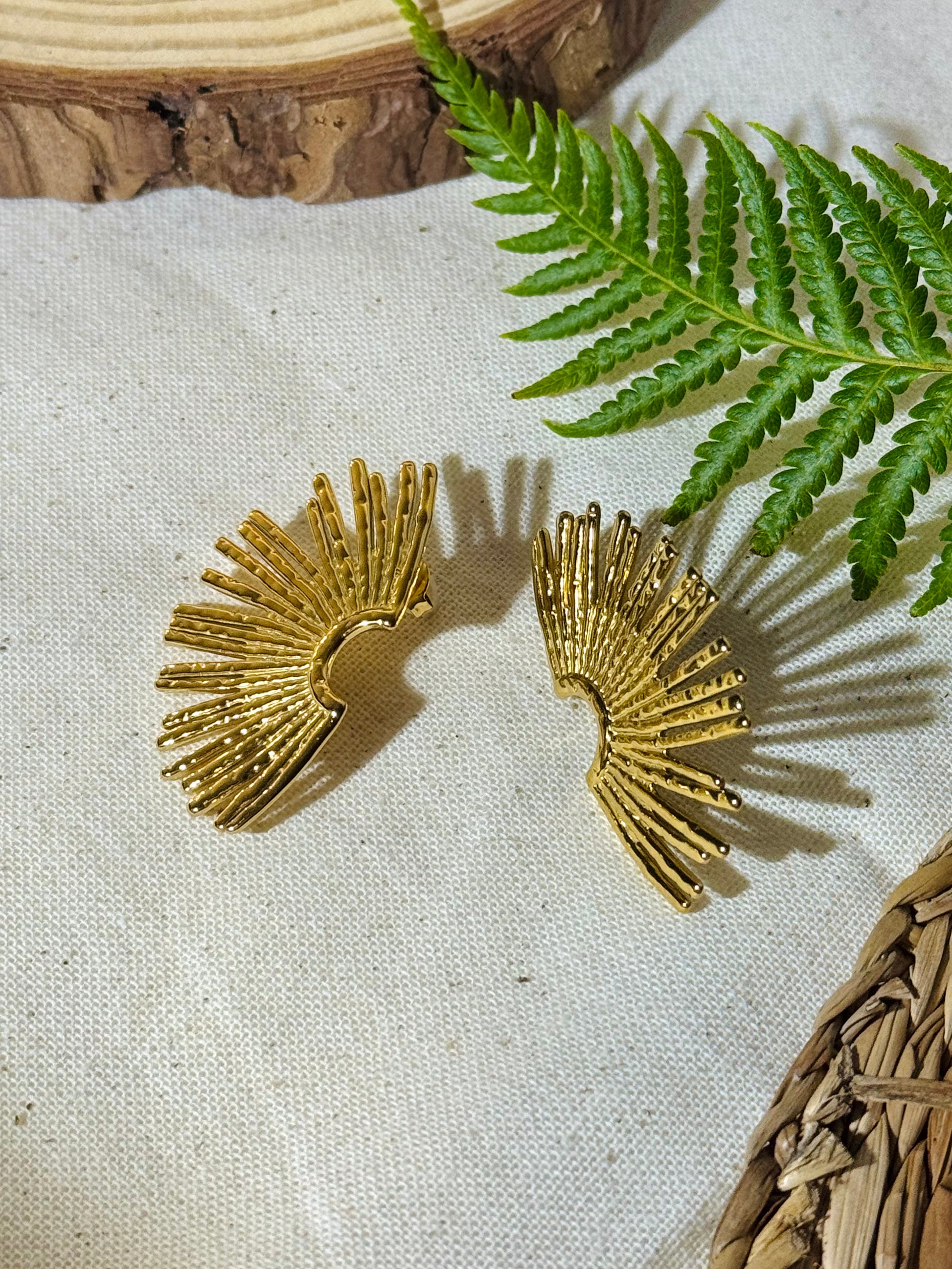 Boucles d’oreilles dorées au design rayonnant et unique.