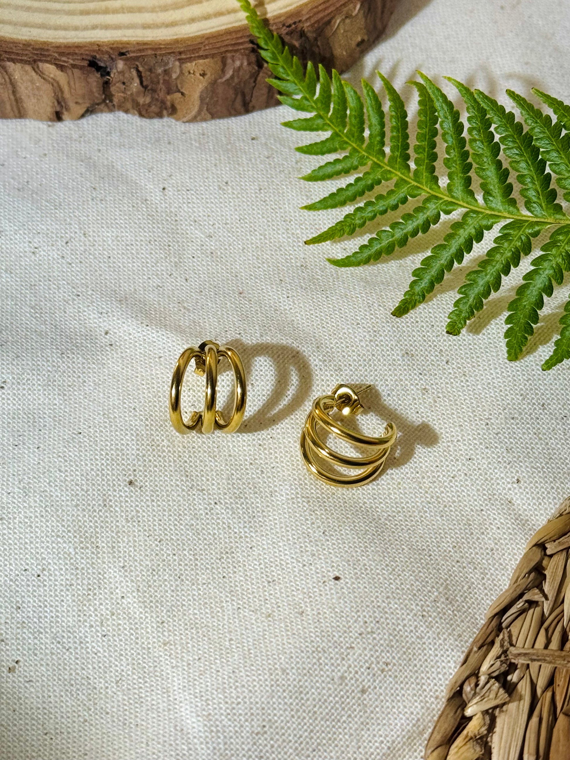 Boucles d’oreilles dorées à design multi-anneaux moderne.